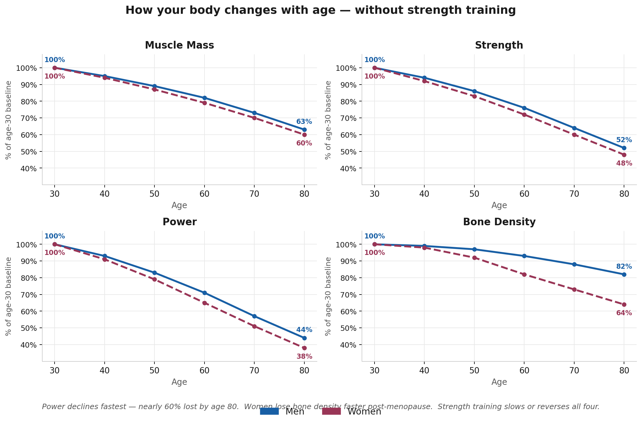 The good news: it's not inevitable. Strength training doesn't just slow the process — it reverses it.